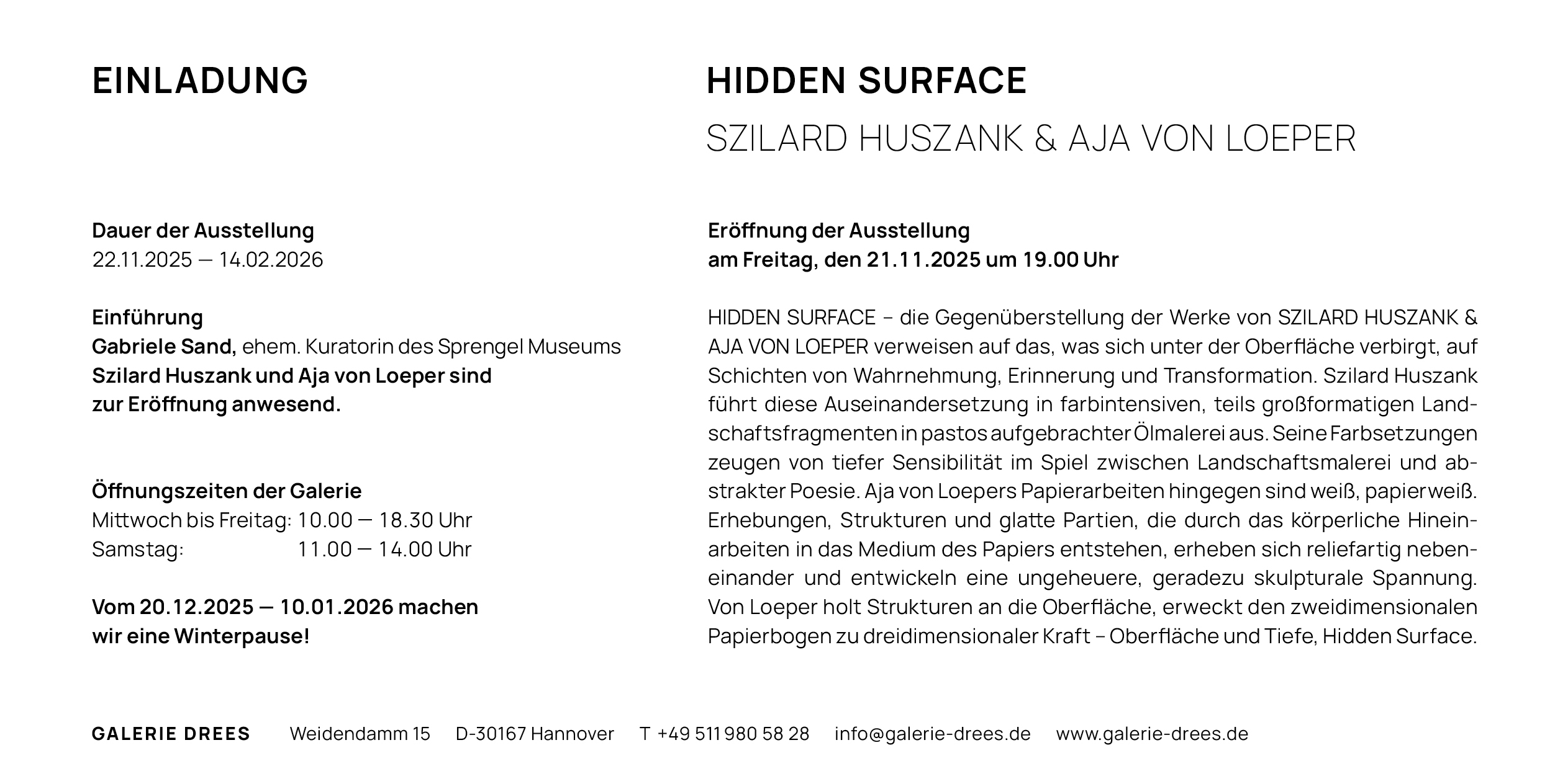 - 22.11.25 – 14.02.26 HIDDEN SURFACE Galerie Drees, Hannover